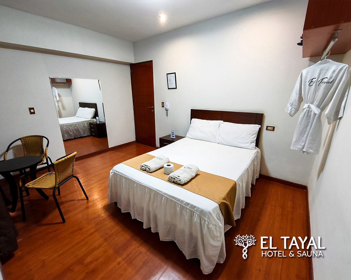 Disfruta de una estadía diseñada para tu descanso y comodidad. Nuestro hospedaje ofrece ambientes acogedores, camas confortables y todos los servicios que necesitas para relajarte después de un día lleno de actividades. Además, contamos con paquetes especiales de habitación y circuito sauna, ideales para una experiencia de bienestar completa. Descansa, recarga energías y siéntete como en casa.